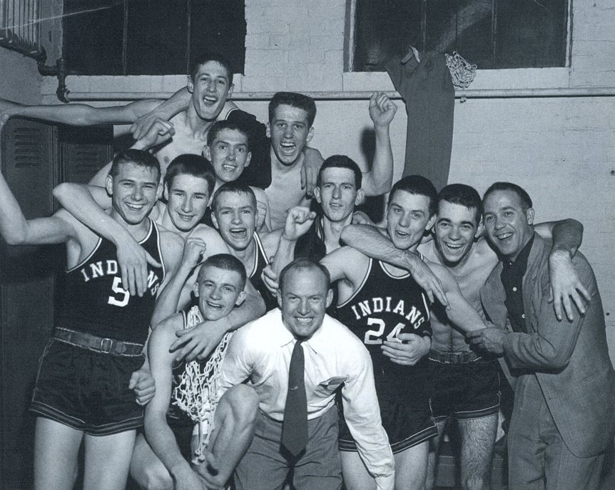 So there’s this picture. It’s of the 1954 Milan Indians, and it’s not the reserved, rigorously posed one everyone knows. Somebody — no one remembers who — took this picture right after the team shocked the state, took it inside their Hinkle Fieldhouse locker room where it’s all sweat and self-pinching, where the players and coaches are tightly woven together, wearing a series of expressions that reveal just how many ways human beings can feel joy.