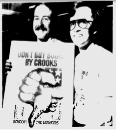 In this Sunday’s New York Times Book Review — and just in time for the release of George W. Bush’s memoirs — I’ve got an essay on the crazy (but long forgotten) protests surrounding the release of Richard Nixon’s memoirs. My cast of characters includes Tom Flanigan and Bill Boleyn (pictured above), the co-founders of the Committee to Boycott Nixon’s Memoirs, and Sid and Esther Kramer, the co-owners of Westport, CT”s Remarkable Book Shop (pictured below). Really, though, it includes just about everyone living in 1978 — because RN: The Memoirs of Richard Nixon came with a degree of media hype achieved by no presidential memoir before or (so far) since.